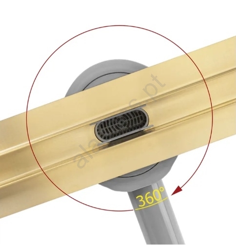 • Ralo linear Neox Slim Pro com 70 cm de comprimento e acabamento dourado escovado elegante.
