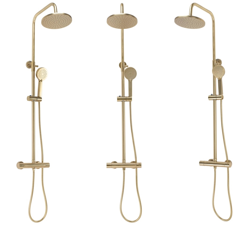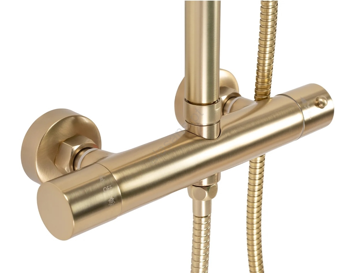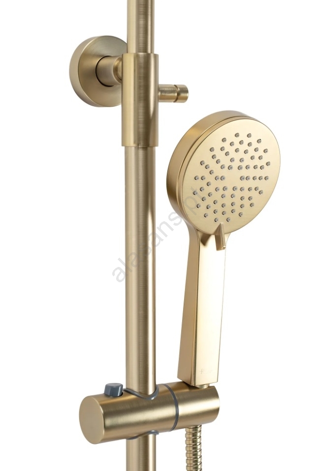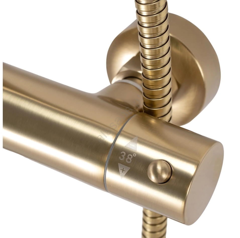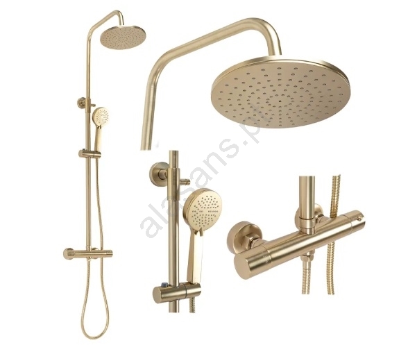 REA-P2323 - Conjunto de duche com bateria termostática PAROT, acabamento dourado escovado