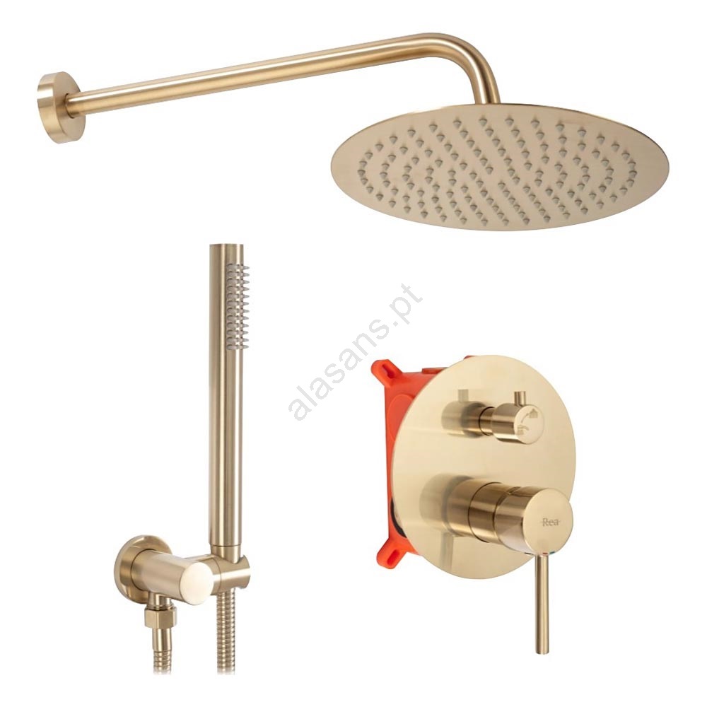 REA-P4160 - Conjunto de duche com misturador encastrado LUNGO, dourado escovado