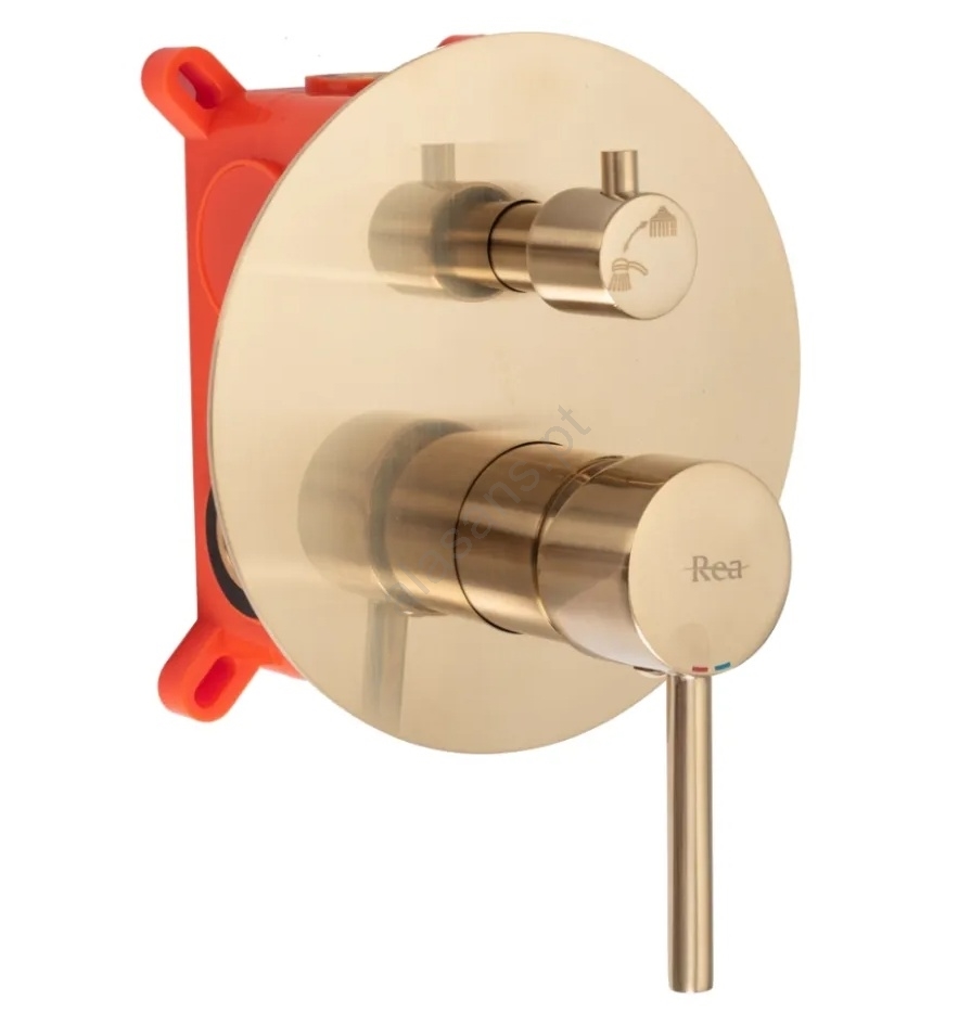 REA-P6609 - Conjunto de duche com misturador termostático encastrado LUNGO, acabamento dourado escovado