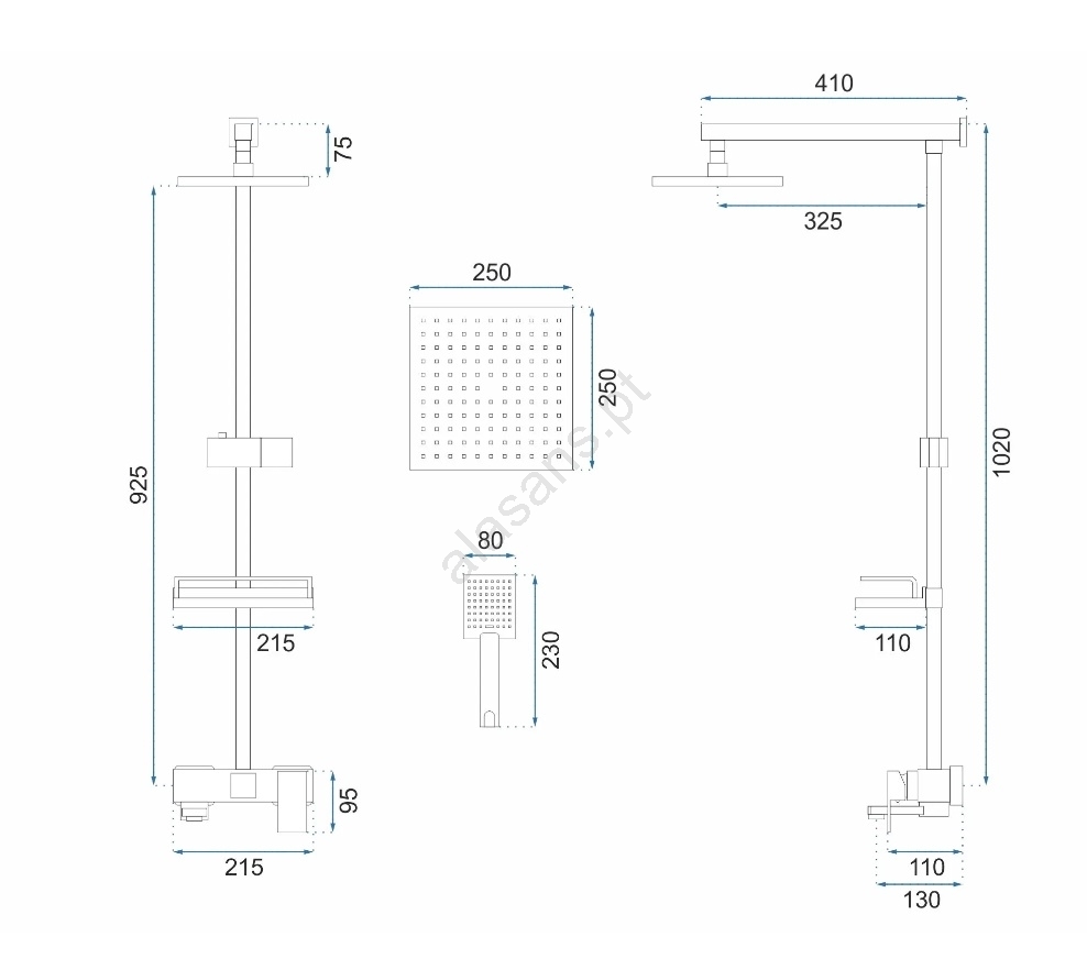 • Conteúdo da embalagem: duche de mão e cabeça de duche, suporte para duche de mão, saboneteira, bateria com cartucho e mangueira de 150 cm.