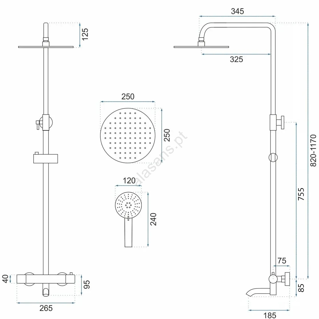 REA-P8807 - Conjunto de duche com misturador termostático LUNGO, acabamento em cobre escovado