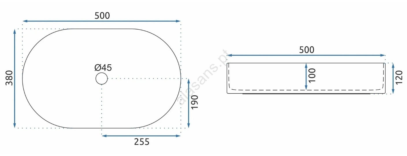 REA-U6563 - Lavatório de sobrepor NADIA 38x50 cm cerâmica/branco brilhante