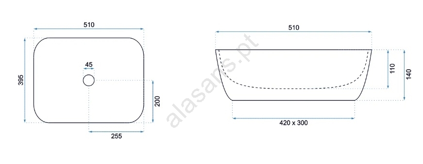 REA-U6647 - Lavatório de bancada FREJA 39,5x51 cm cerâmica/cinzento/decoração em mármore