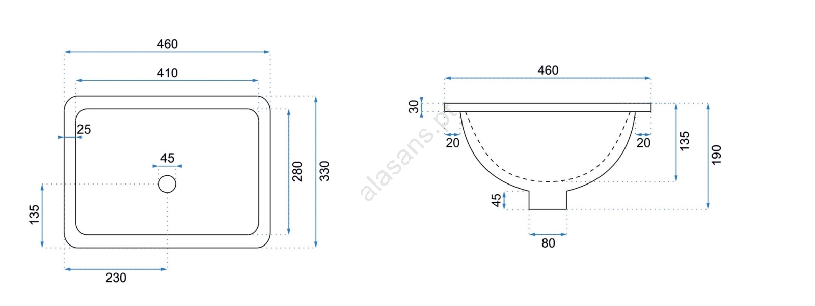 REA-U6653 - Lavatório de embutir ADELA 33x46 cm cerâmica/branco brilhante