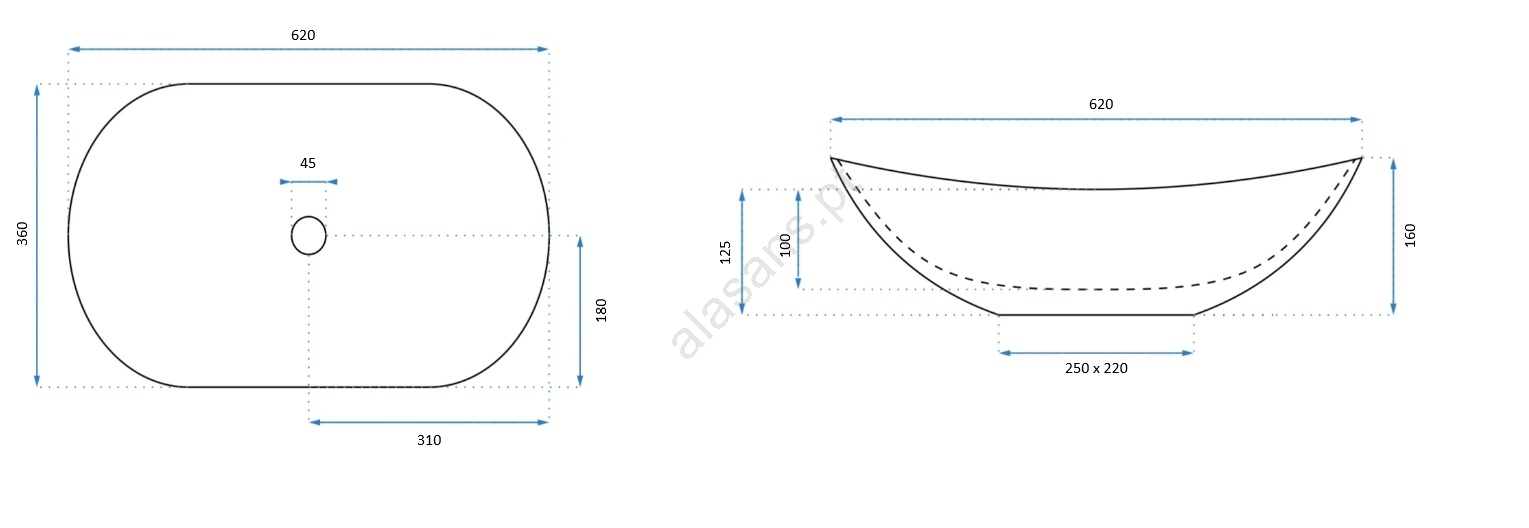 • REA-U8570 - Lavatório para bancada ROYAL 36x62 cm cerâmica/branco brilhante/dourado