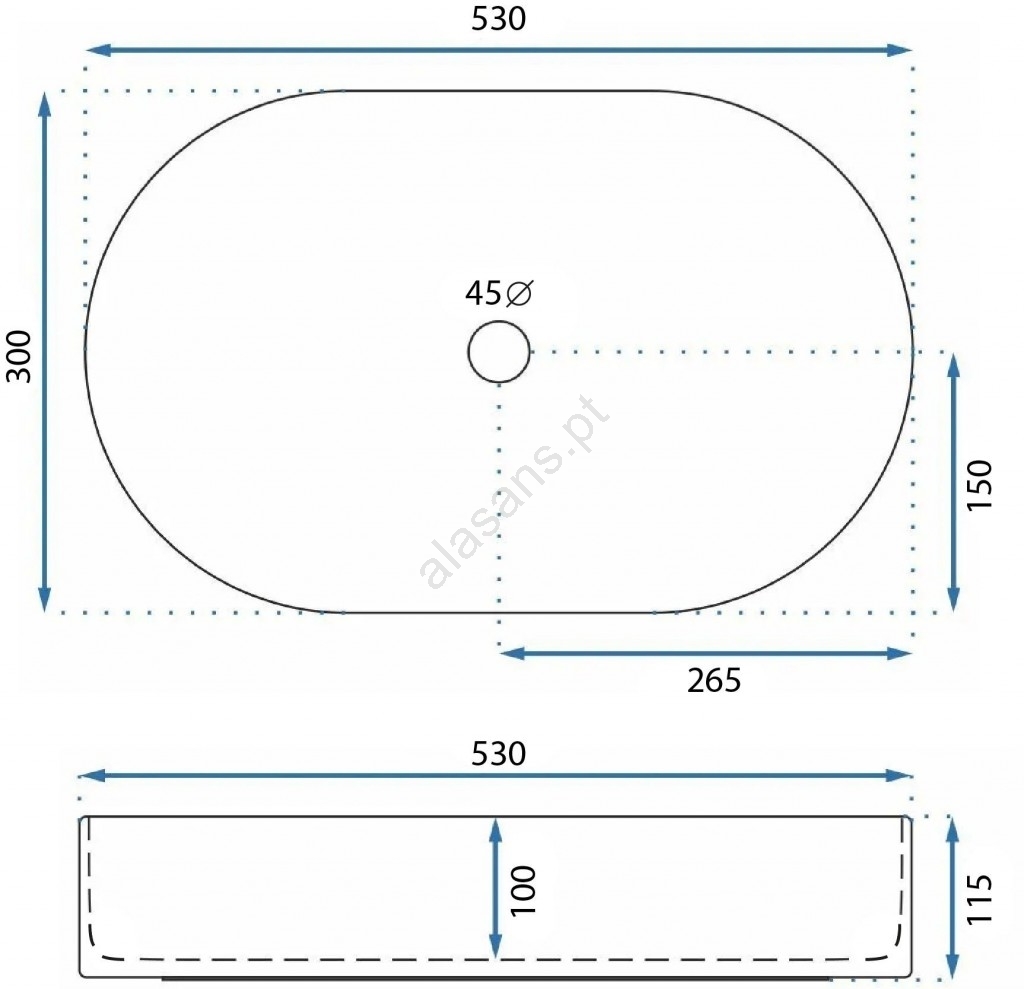 REA-U9108 - Lavatório de bancada LAYLA 30x53 cm cerâmica/branco brilhante