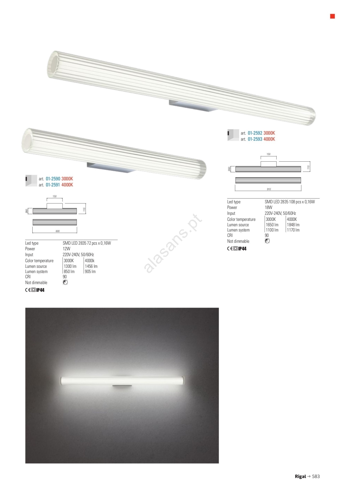 Redo 01-2591 - Luz LED para espelho de casa de banho RIGAL LED/12W/230V 4000K 90 cm IRC 90 IP44 cromado brilhante/branco