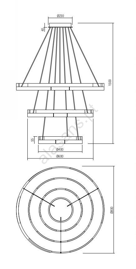 • Redo 01-3182 - Candelabro suspenso LED com regulação CASTLE LED/80W/230V preto