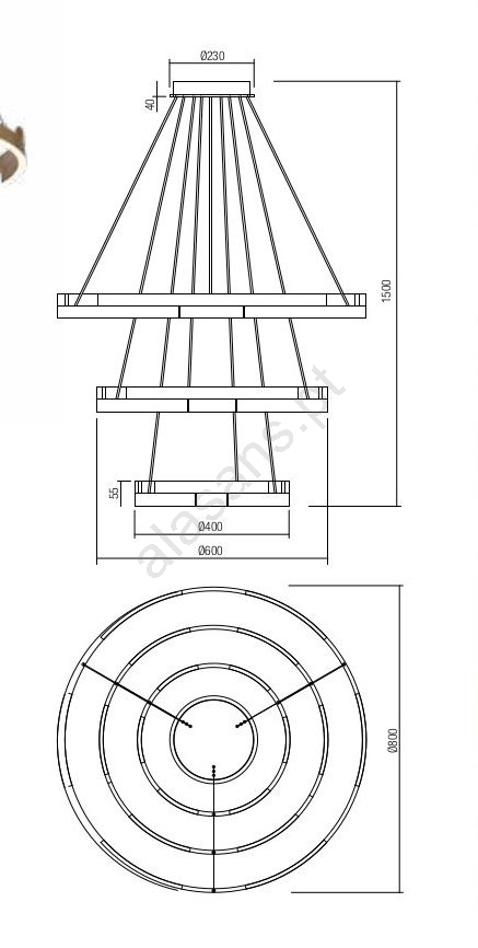• Redo 01-3176 - Candelabro suspenso LED com regulação CASTLE LED/45W/230V preto