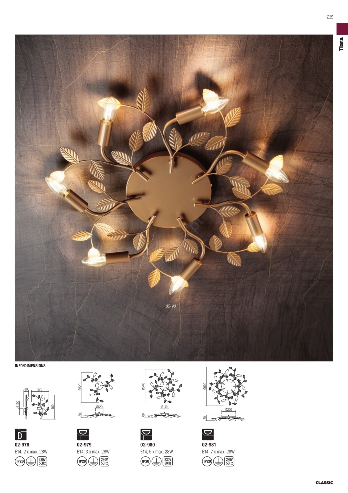 Redo 02-981 - Candelabro integrado TIARA 7xE14/28W/230V caracteriza-se por um design agradável e funcional.  Uma lâmpada com casquilho E14 é adequada para a iluminação Aqui, pode comprar outras lâmpadas a preços vantajosos. Terá um complemento interessante para a sua casa.
