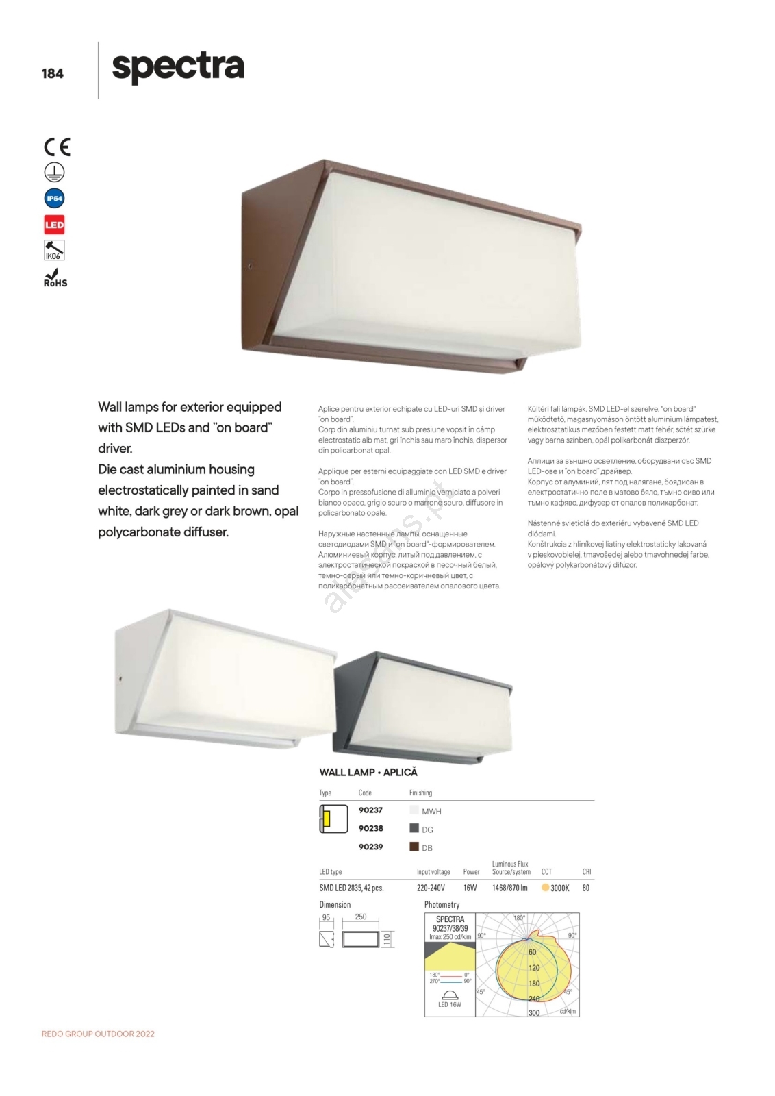 • Redo 90237 - Iluminação de parede exterior LED SPECTRA LED/16W/230V 3000K IP54 branco