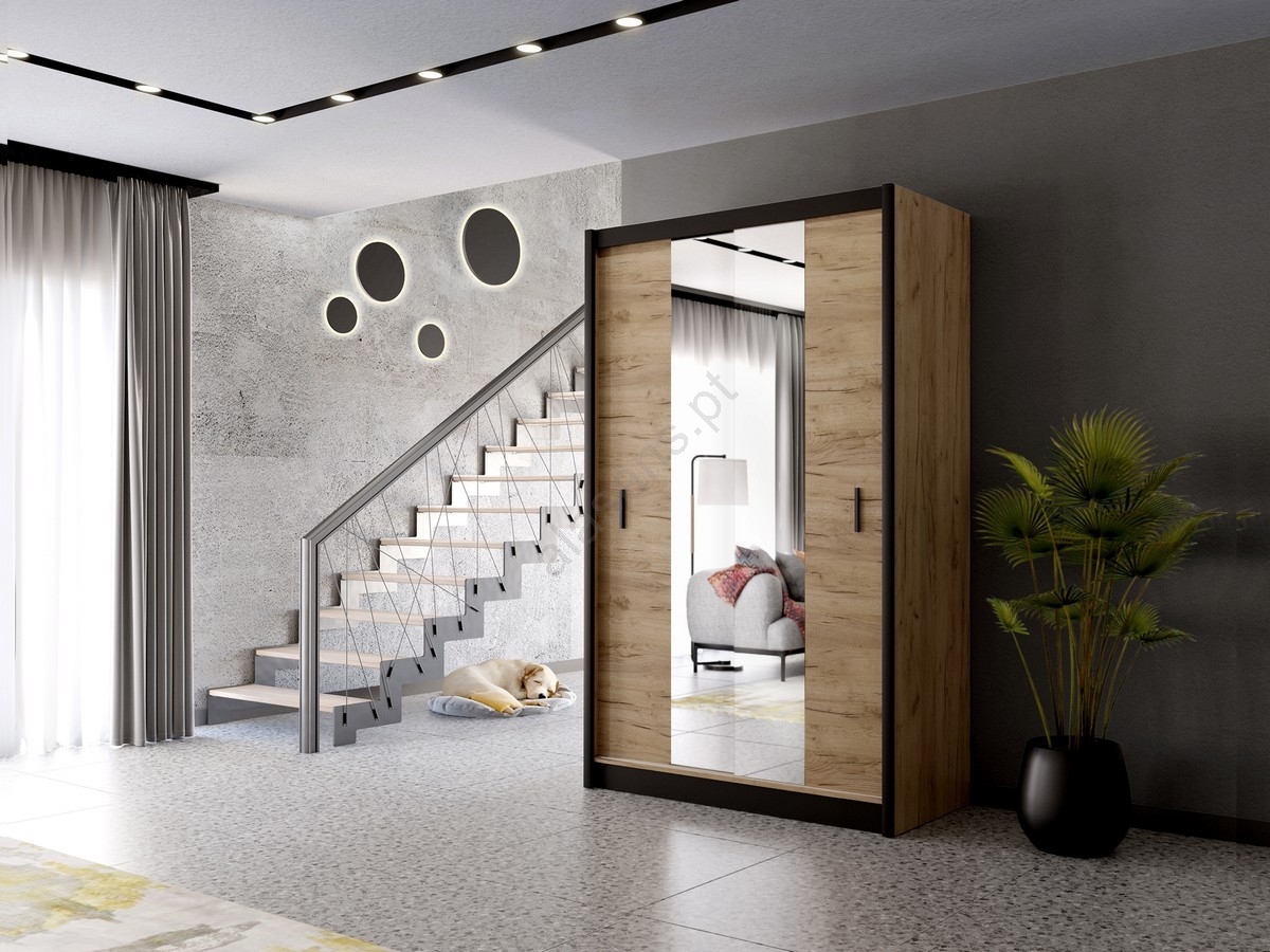Guarda-roupa com espelho MIRO 150x215 cm carvalho craft/preto