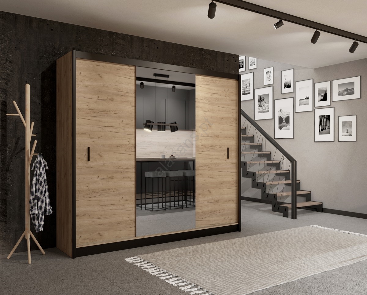 Guarda-roupa com espelho MIRO 250x215 cm carvalho craft/preto