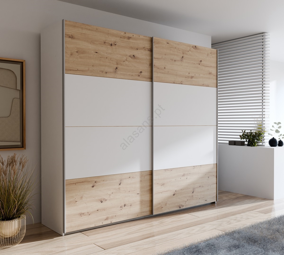 • Guarda-roupa KARO 220x210 cm branco/carvalho artisan