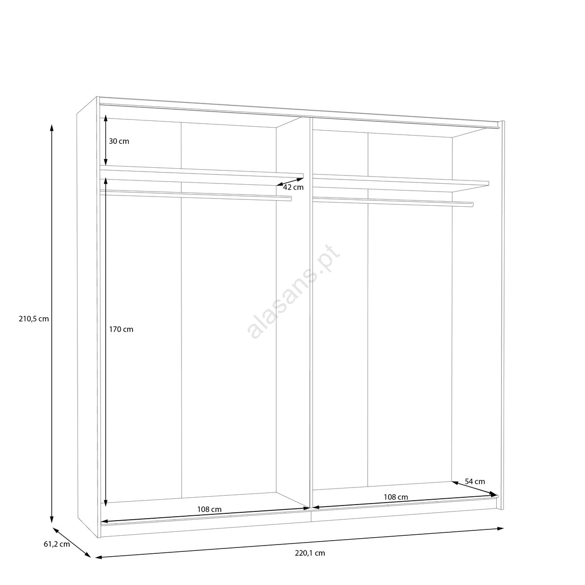 • O guarda-roupa inclui varões para cabides, prateleiras e um amplo espaço de arrumação para as suas roupas, bolsas e artigos sazonais.