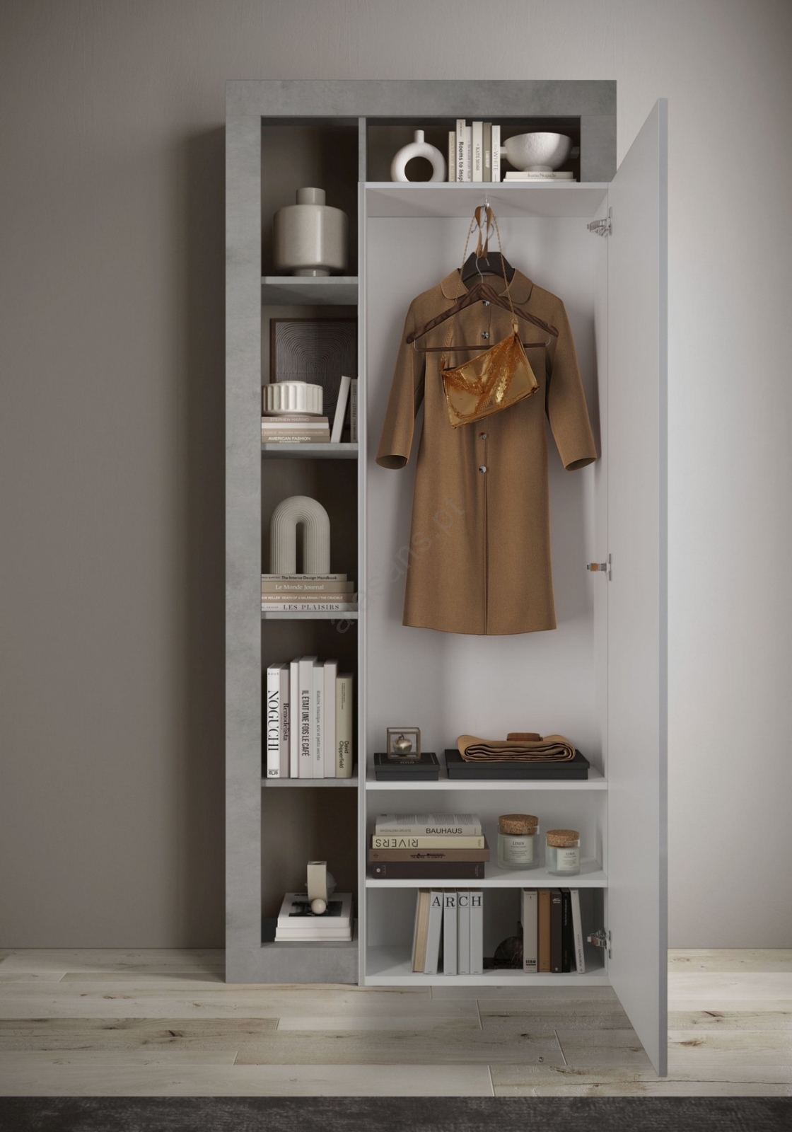 Roupeiro LENOR 91x209 cm branco/cinzento betão