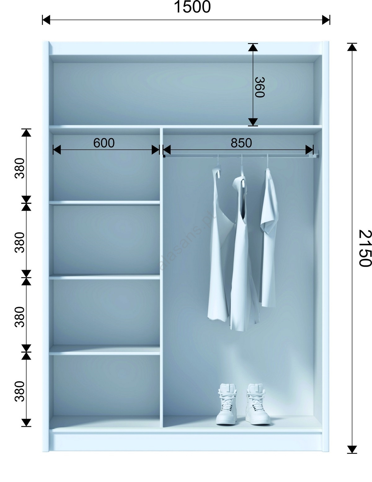 • Guarda-roupa com espelho SANNA 150x215 cm branco