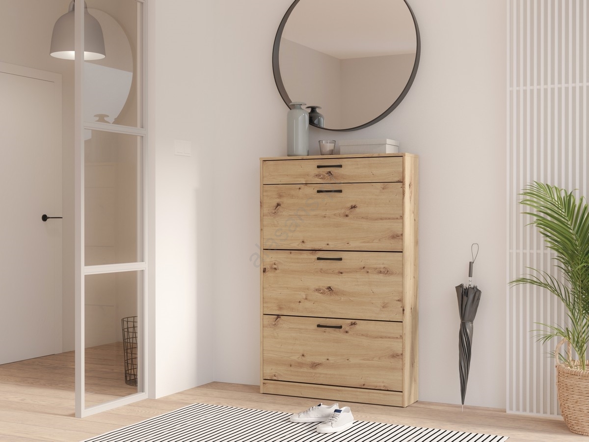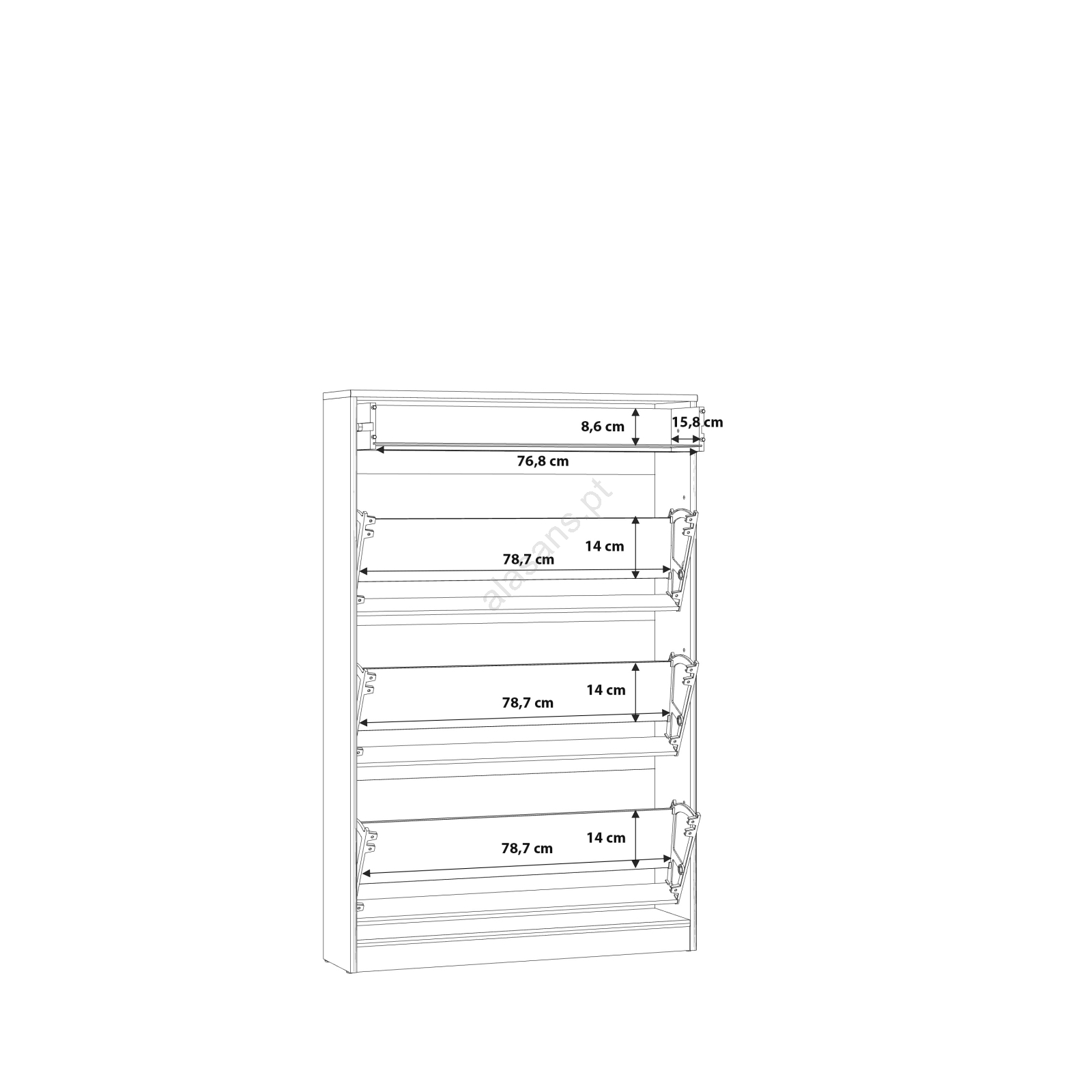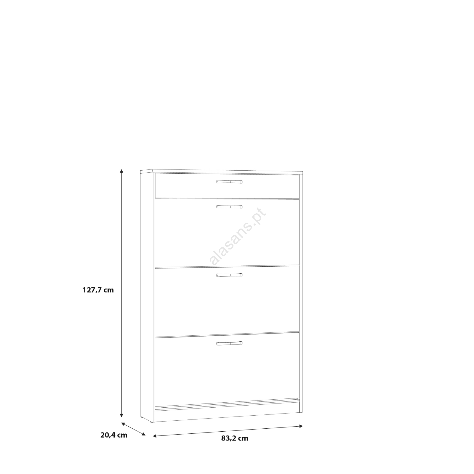 • Graças ao seu formato compacto, esta sapateira de 4 níveis ocupa pouco espaço no chão, oferecendo ao mesmo tempo amplo espaço de arrumação.