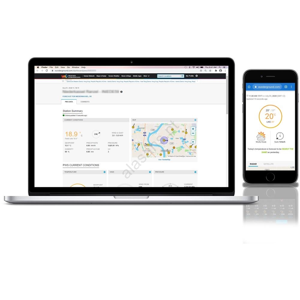 • Suporte para as plataformas meteorológicas públicas globais Weather Underground e Weathercloud + mais 1 plataforma própria.
