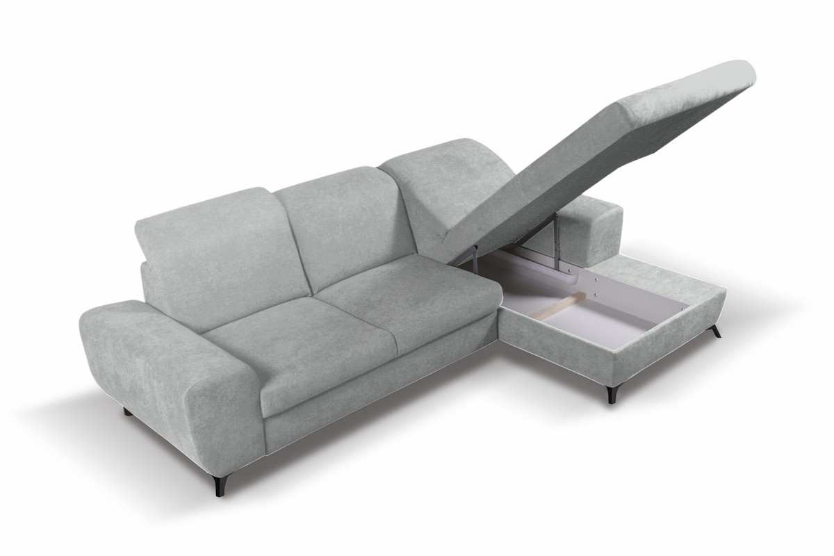 Sofá-cama de canto estofado em L ALTA, canto direito, cinzento, com espaço de arrumação