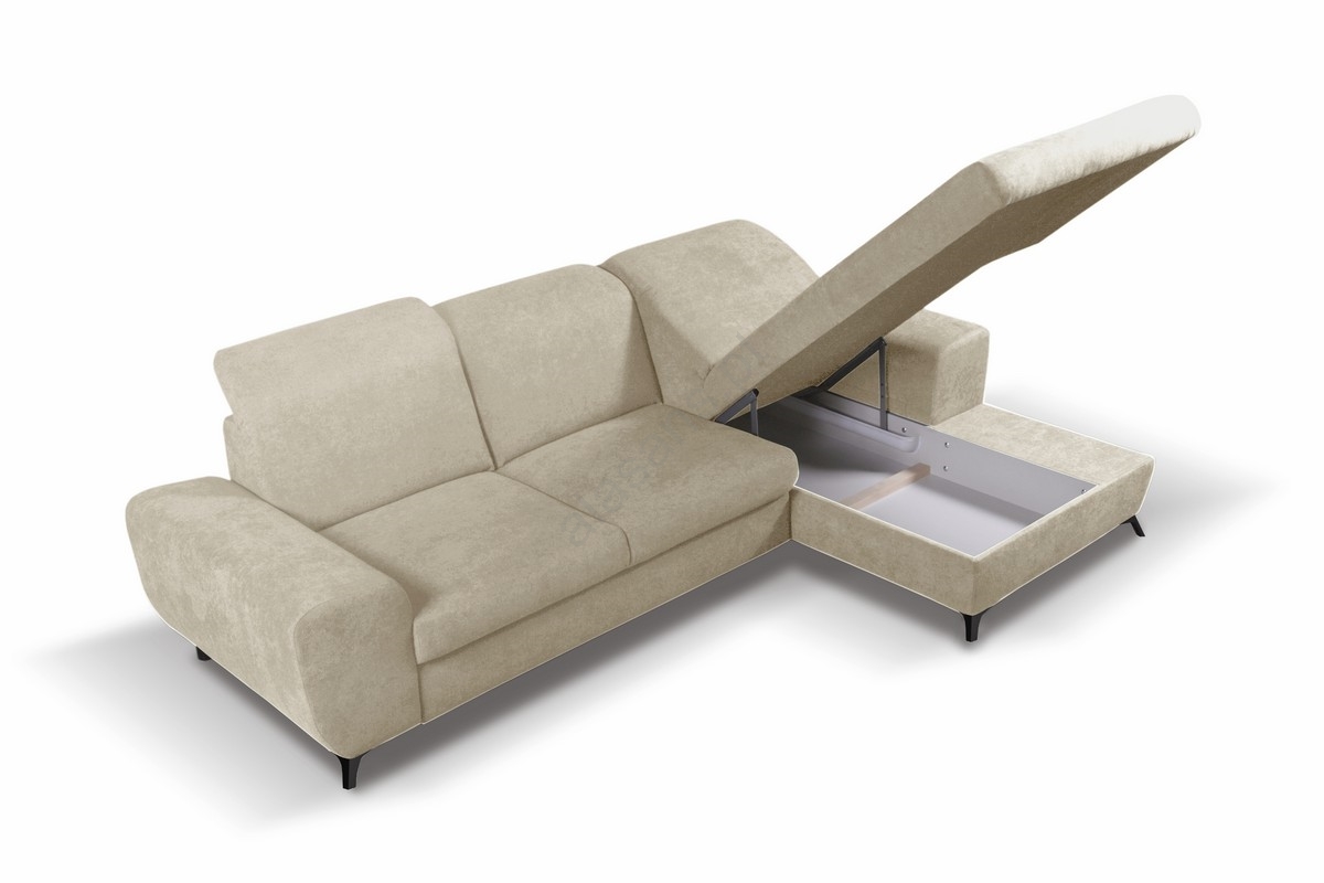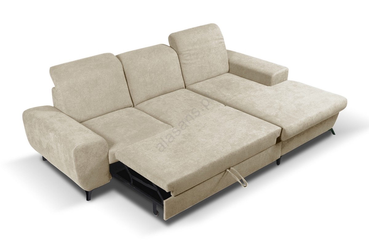 Sofá-cama de canto estofado em L ALTA com compartimento de arrumação, versão direita, bege