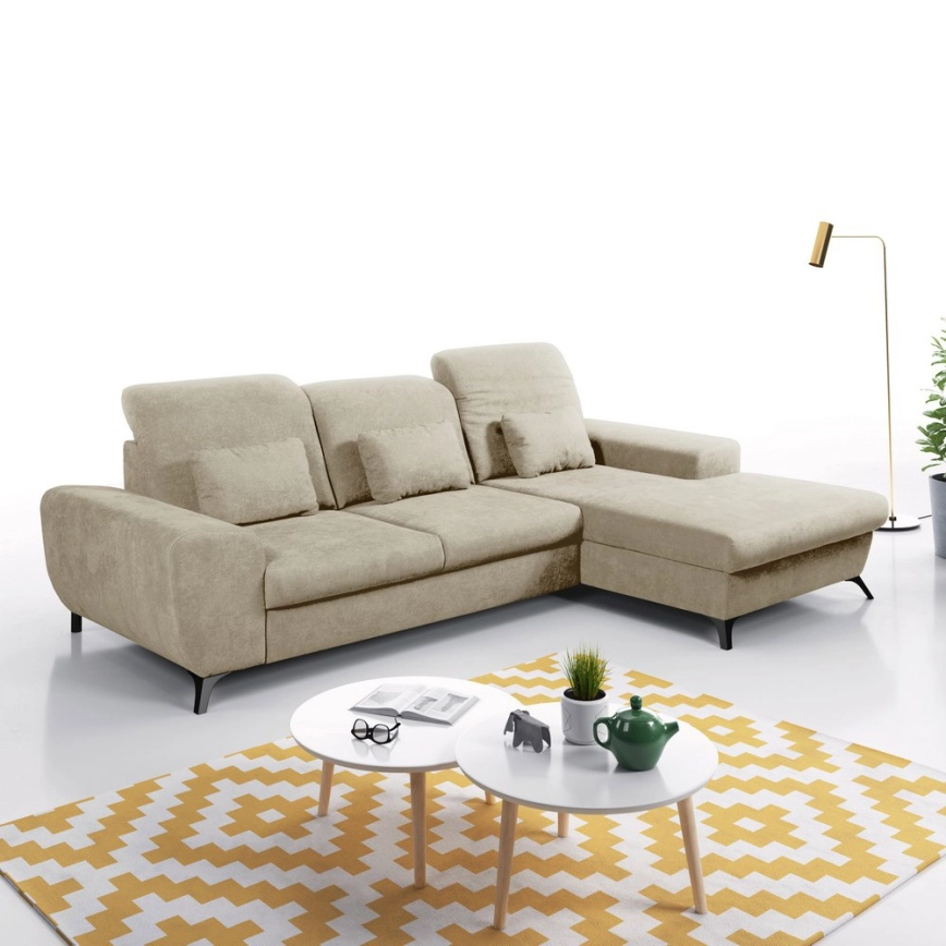 • Sofá-cama de canto estofado em L ALTA com compartimento de arrumação, versão direita, bege
