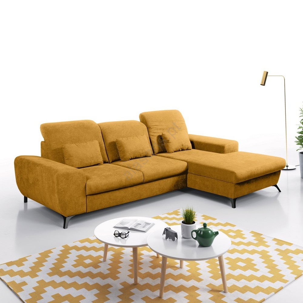 • Sofá-cama de canto estofado ALTA em L, com espaço de arrumação, canto esquerdo, amarelo