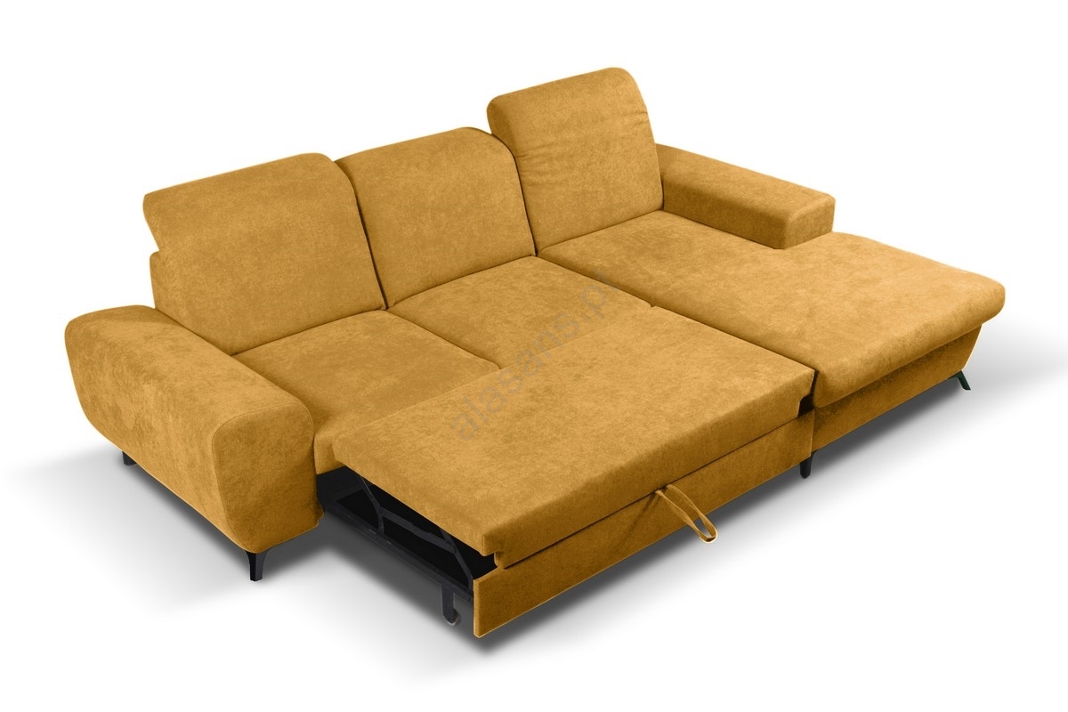 • Sofá-cama de canto estofado ALTA em L com espaço de arrumação, orientação direita, amarelo