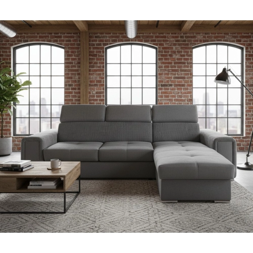 • Sofá-cama de canto em L reversível com baú SALVADA cinza escuro