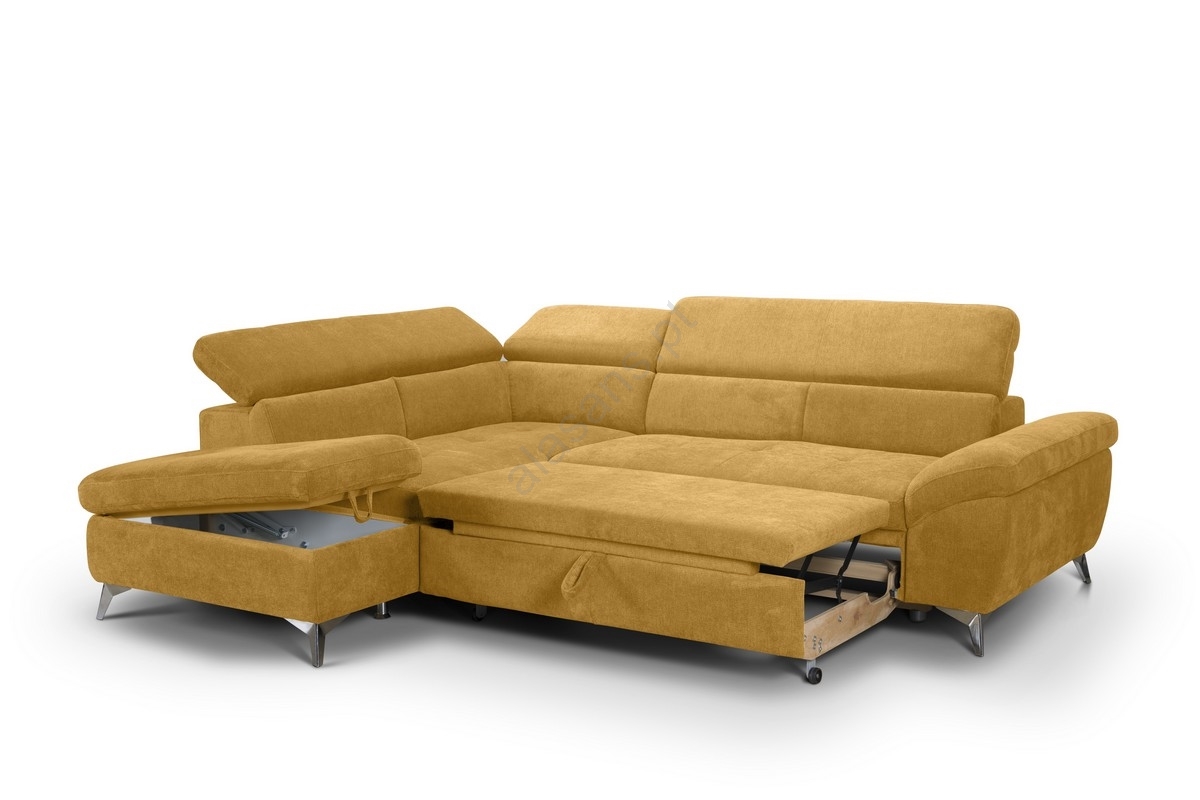 • Sofá de canto retrátil em L SALERNO, lado direito, amarelo