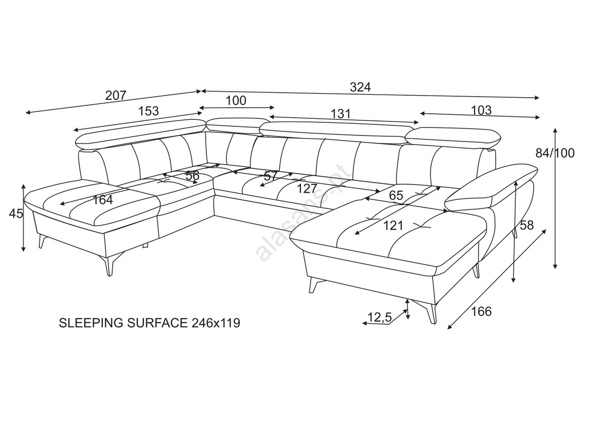 • O sofá foi projetado com encosto de 100 cm de altura, proporcionando excelente suporte para as costas e cabeça.