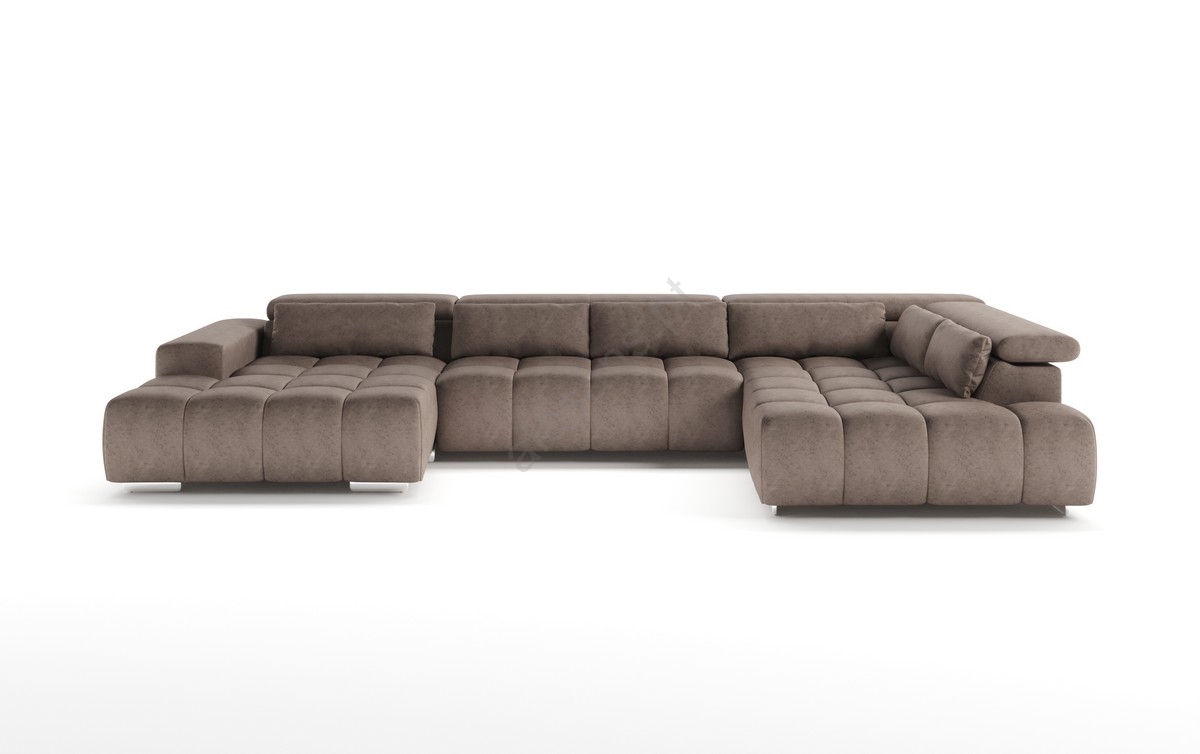 • Sofá de canto em U TROPEA com encostos de cabeça, lado direito, cor castanha
