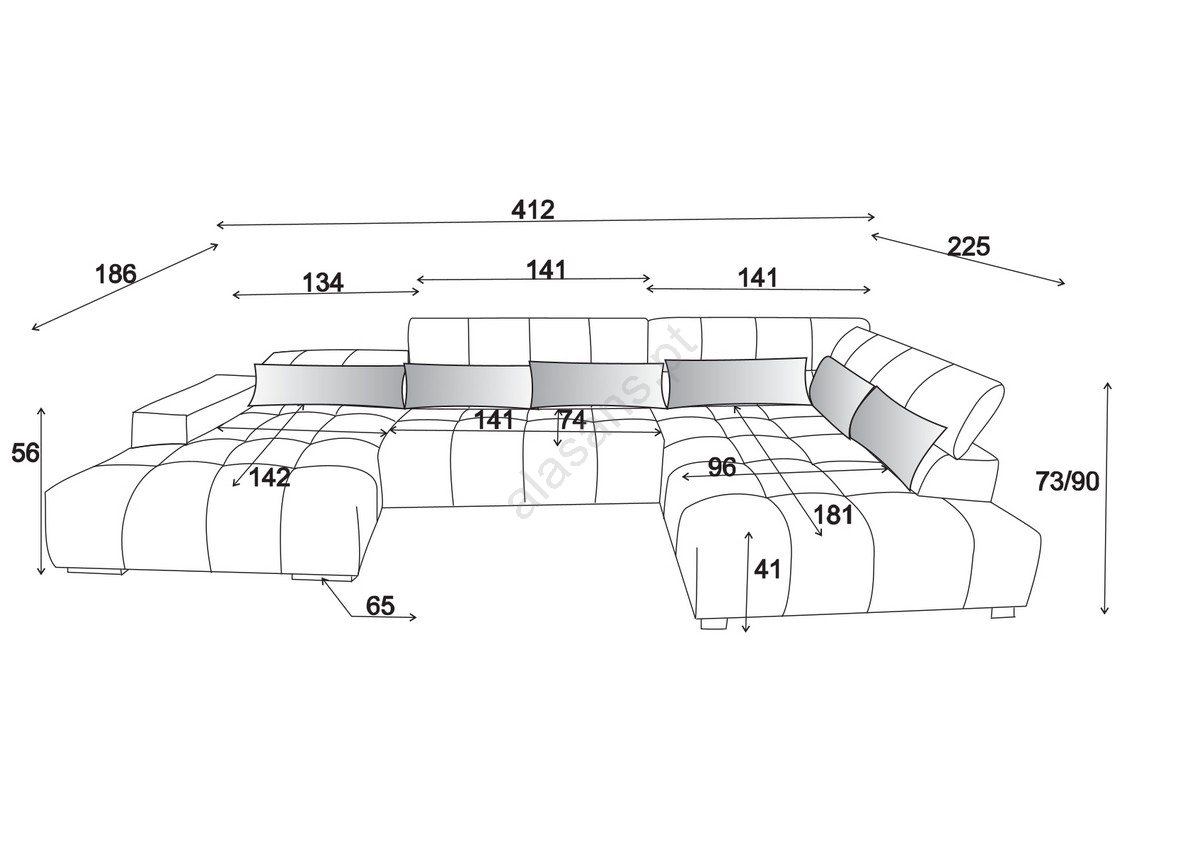 • O sofá possui quatro apoios de cabeça ajustáveis, permitindo posicionamento individual para ainda mais conforto.