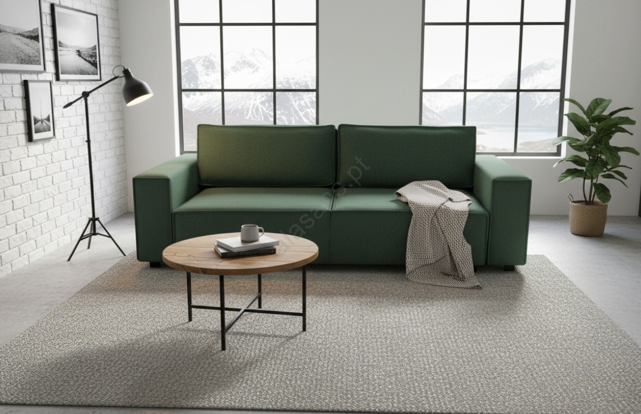 • Sofá-cama de três lugares com espaço de arrumação RONDA verde