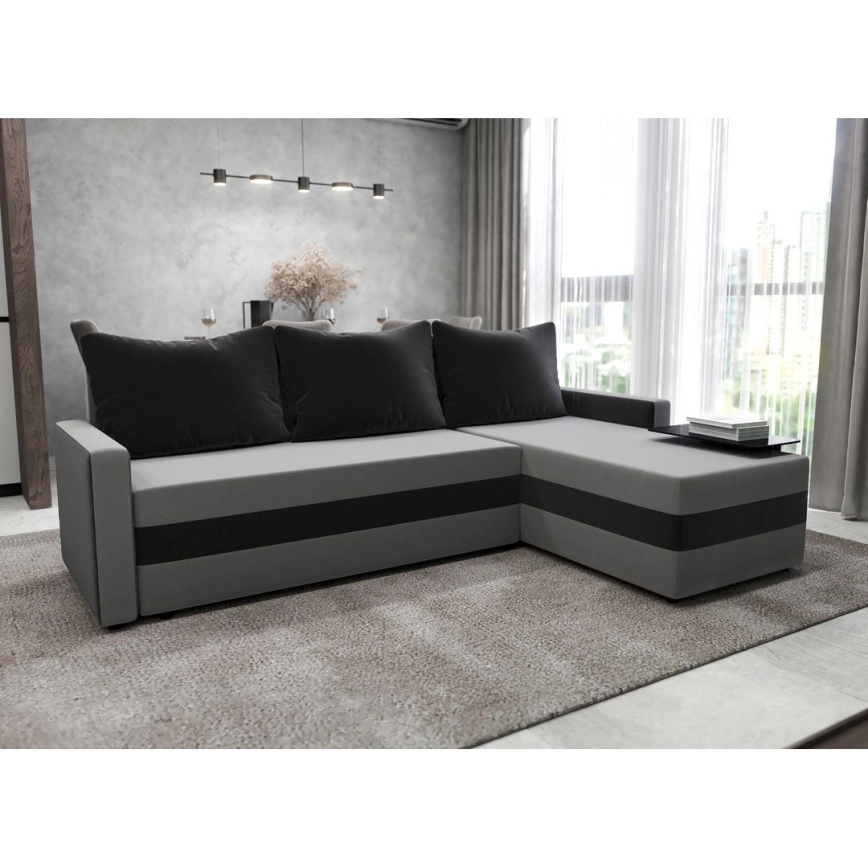 Sofá de canto em L estofado BRISTOL, reversível e convertível em cama, cinzento/preto