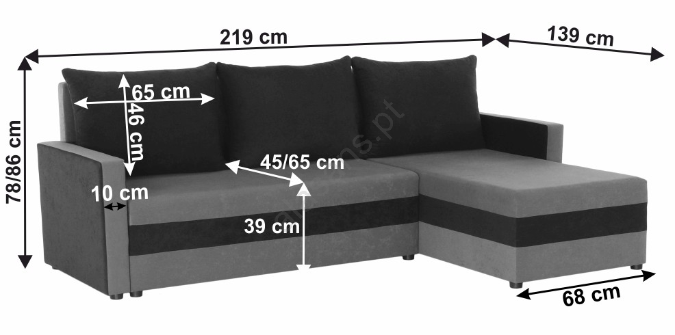 • A sua construção universal permite montar o sofá de canto no lado direito ou esquerdo consoante a disposição da sua sala de estar.