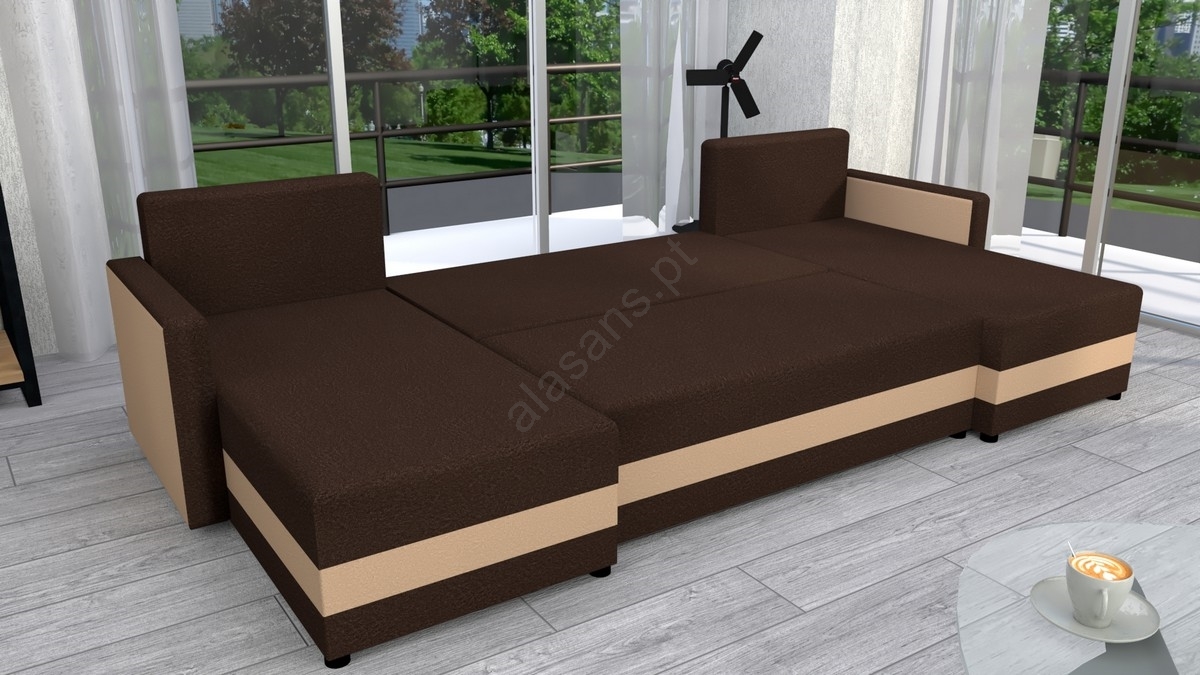 • Sofá estofado de canto em U, versátil e sofá-cama BRISTOL castanho/bege