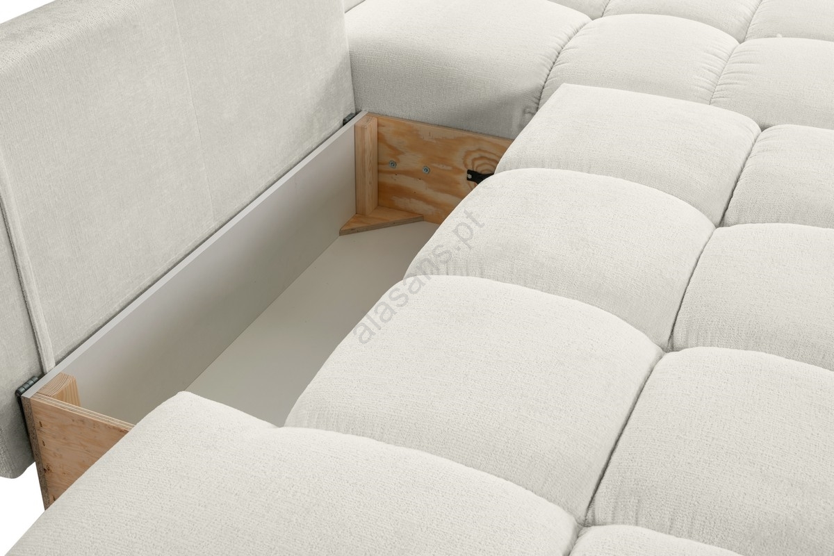 • Sofá-cama de canto estofado ALMADA em L, com compartimento de arrumação, versão direita, bege