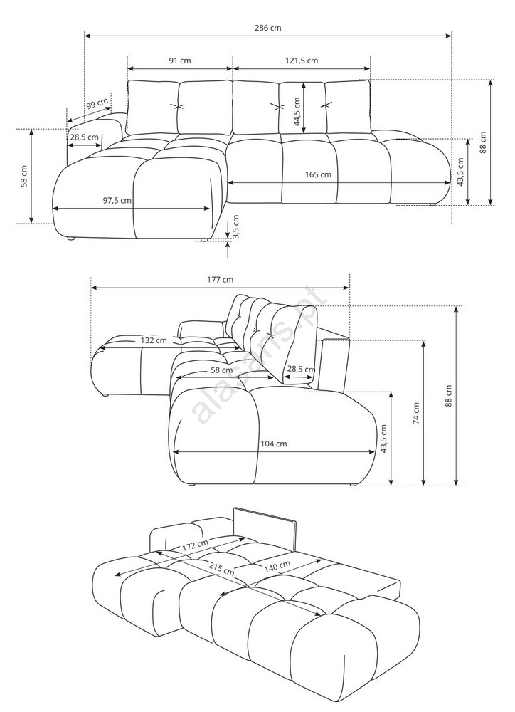 • Sofá-cama de canto moderno ALMADA (canto direito) é a escolha ideal para quem procura uma combinação de estilo, conforto e praticidade.