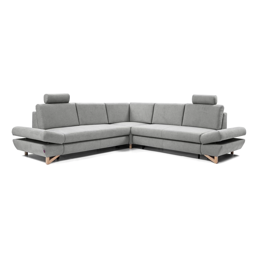 Sofá-cama de canto estofado AVESTA em L, canto direito, cinzento, com espaço de arrumação