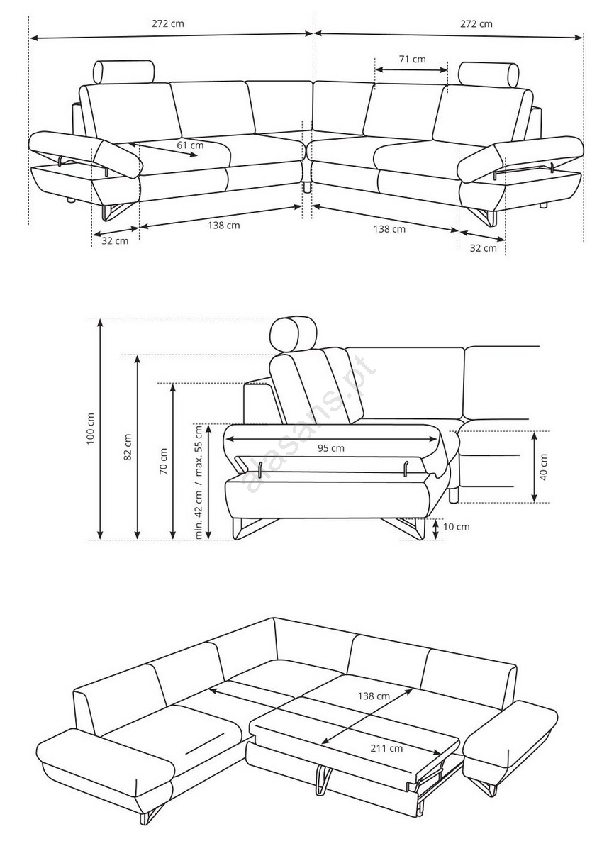 • Sofá-cama de canto moderno AVESTA (canto direito) é a escolha ideal para quem procura a combinação de estilo, conforto e funcionalidade.
