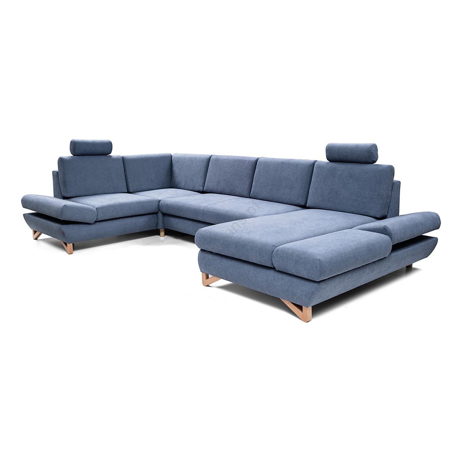 • Sofá de canto estofado em U, conversível em cama, com espaço de arrumação AVESTA azul