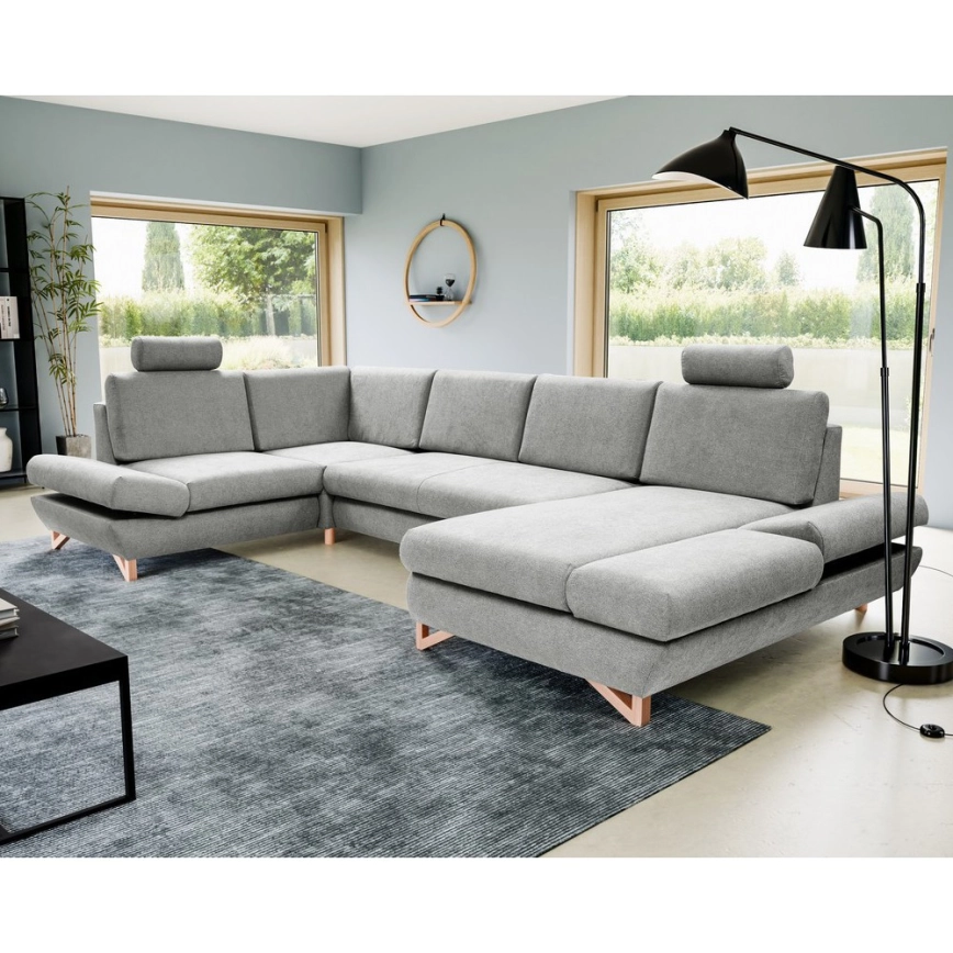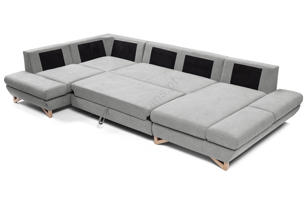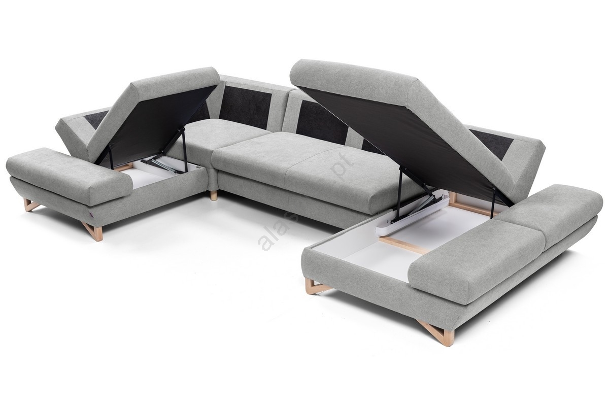 • Sofá-cama de canto estofado em U com arrumação AVESTA cinzento