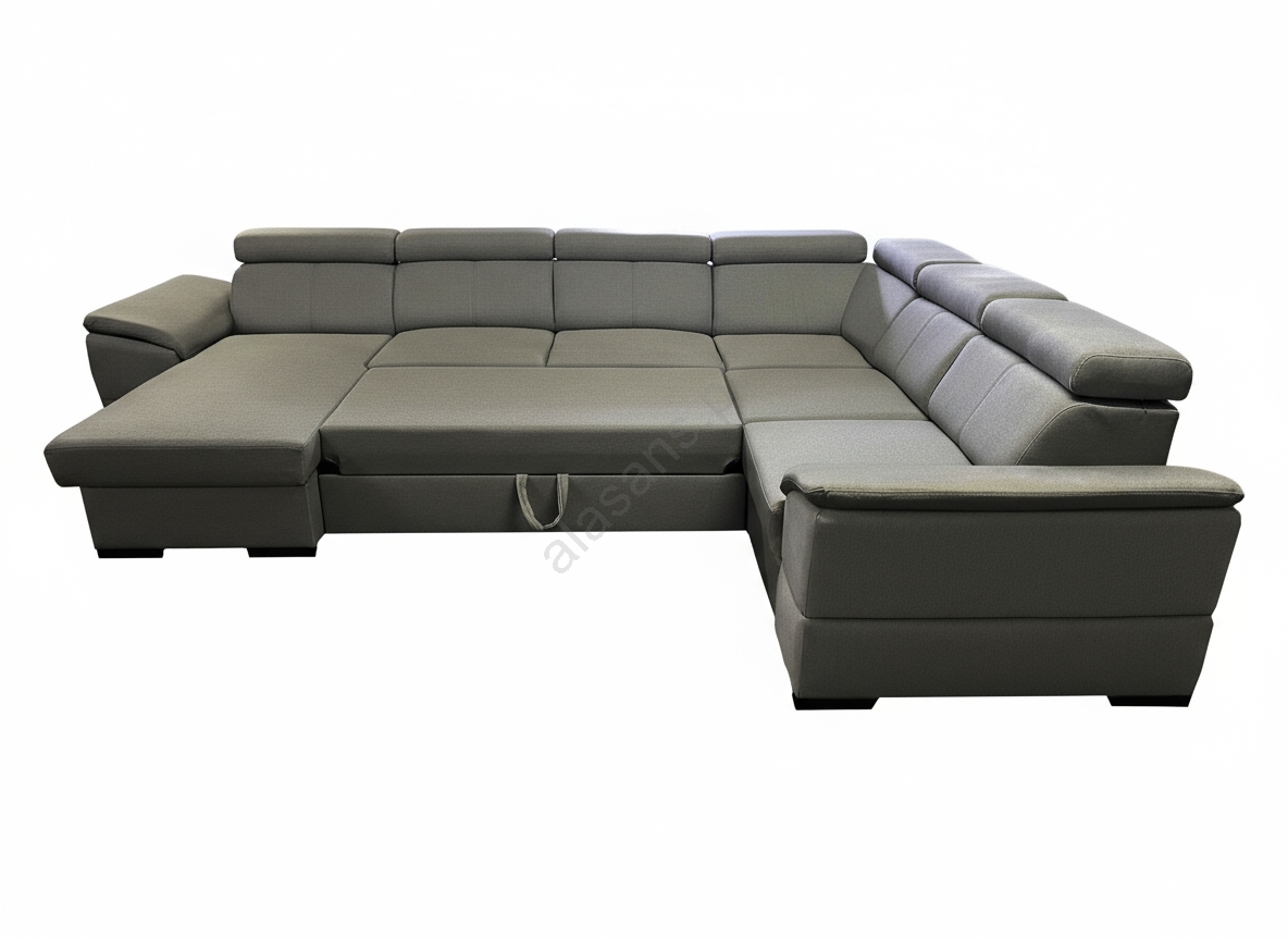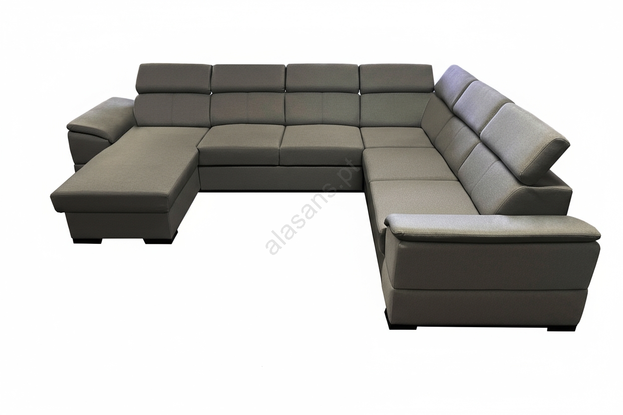 • Sofá-cama seccional em U com canto reversível e amplo espaço de arrumação GRANADA castanho