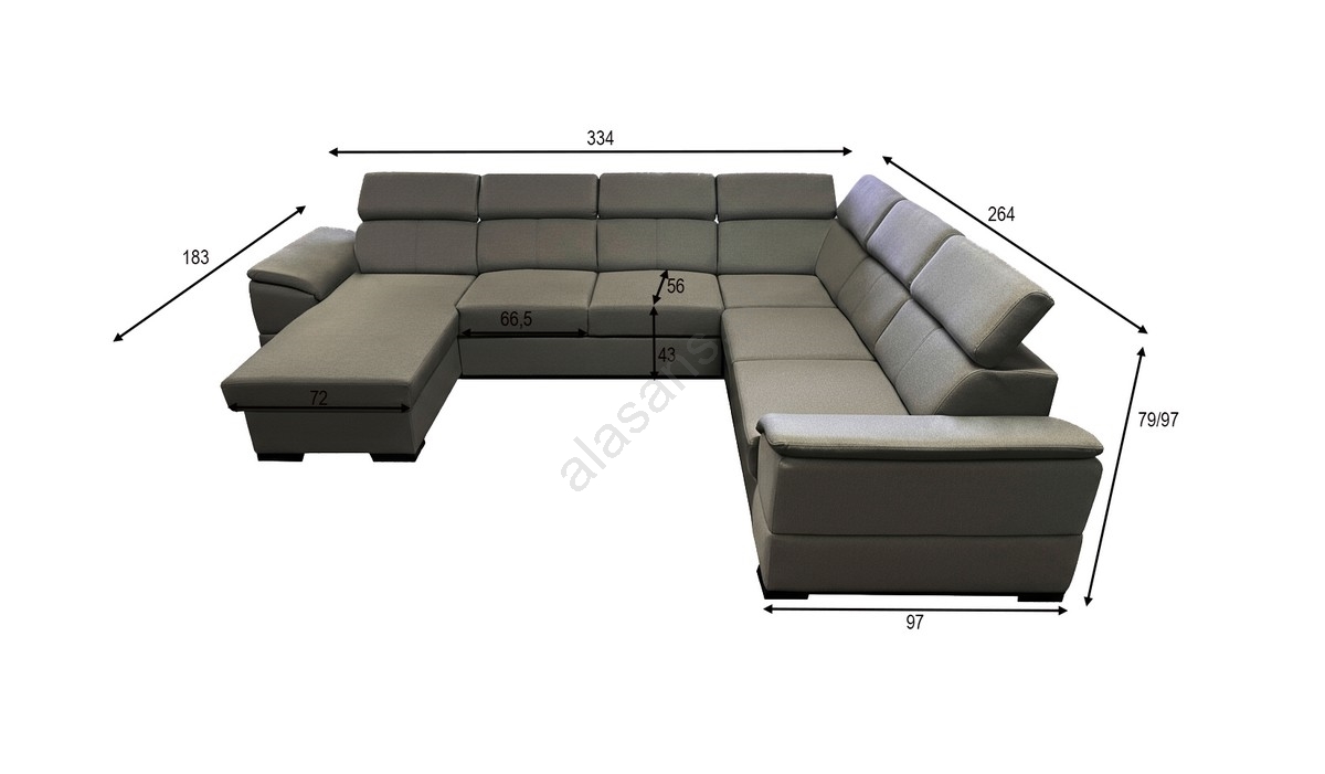 • O sofá oferece 7 apoios de cabeça ajustáveis em 5 posições.