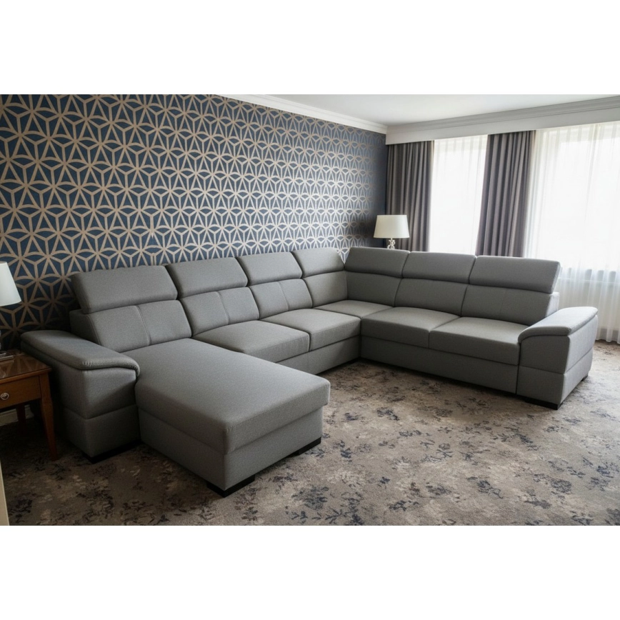 • Sofá-cama em U com canto reversível e espaço de arrumação GRANADA, cinzento claro
