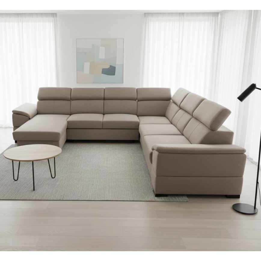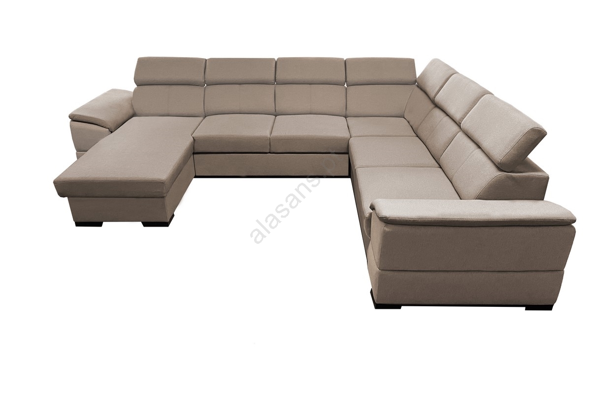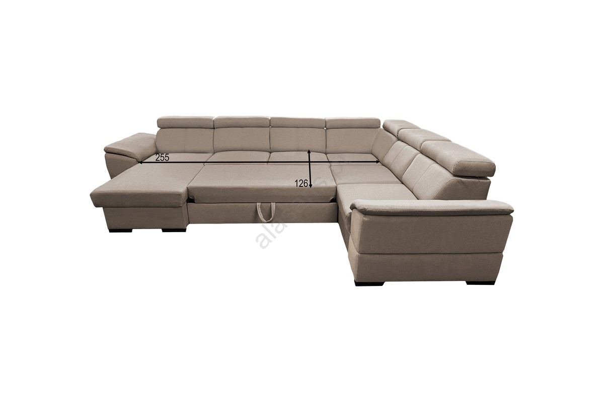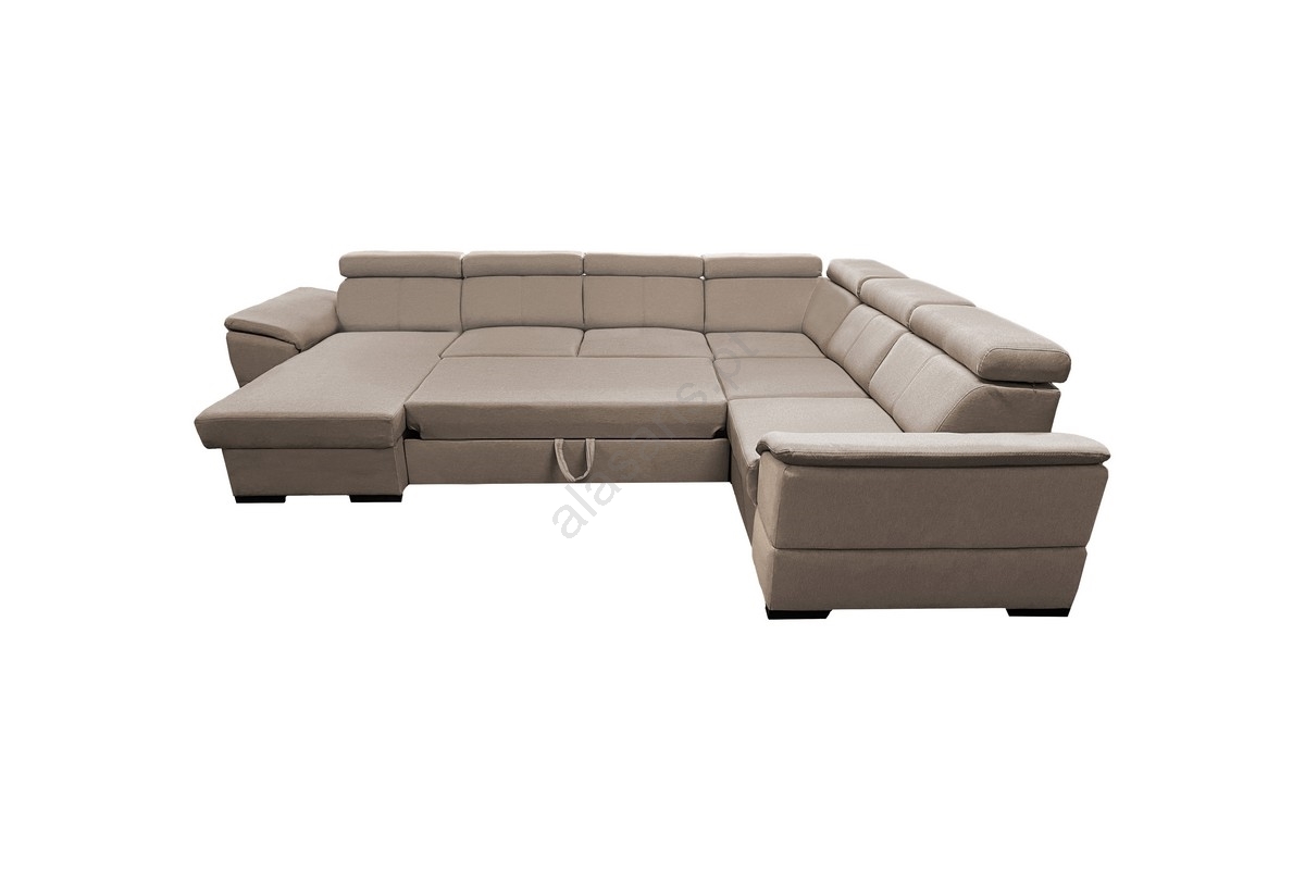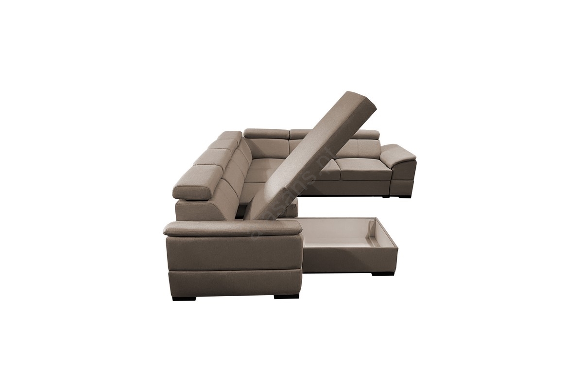 Sofá-cama em U com canto reversível e compartimento de arrumação GRANADA bege