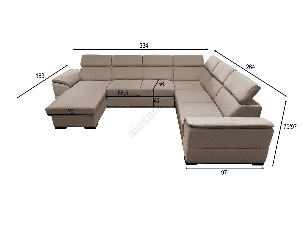 • Sofá-cama em U com canto reversível e compartimento de arrumação GRANADA bege