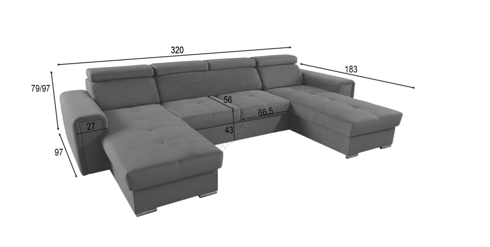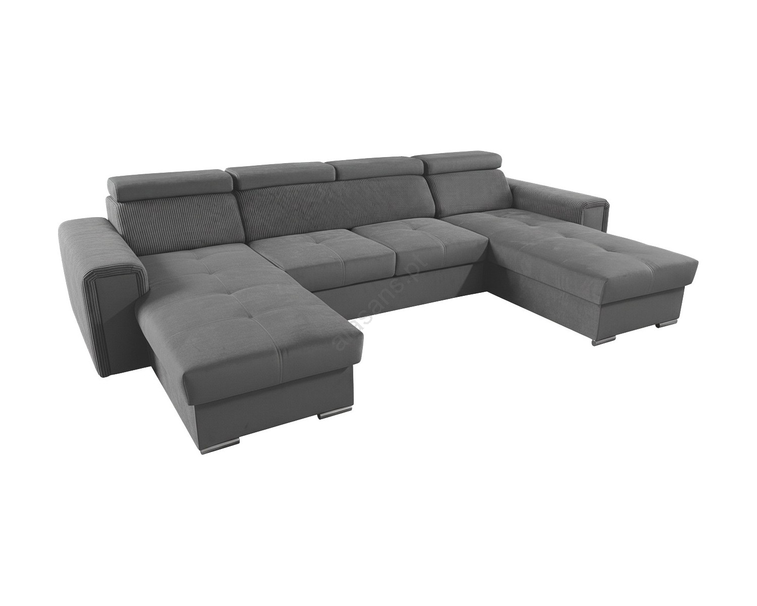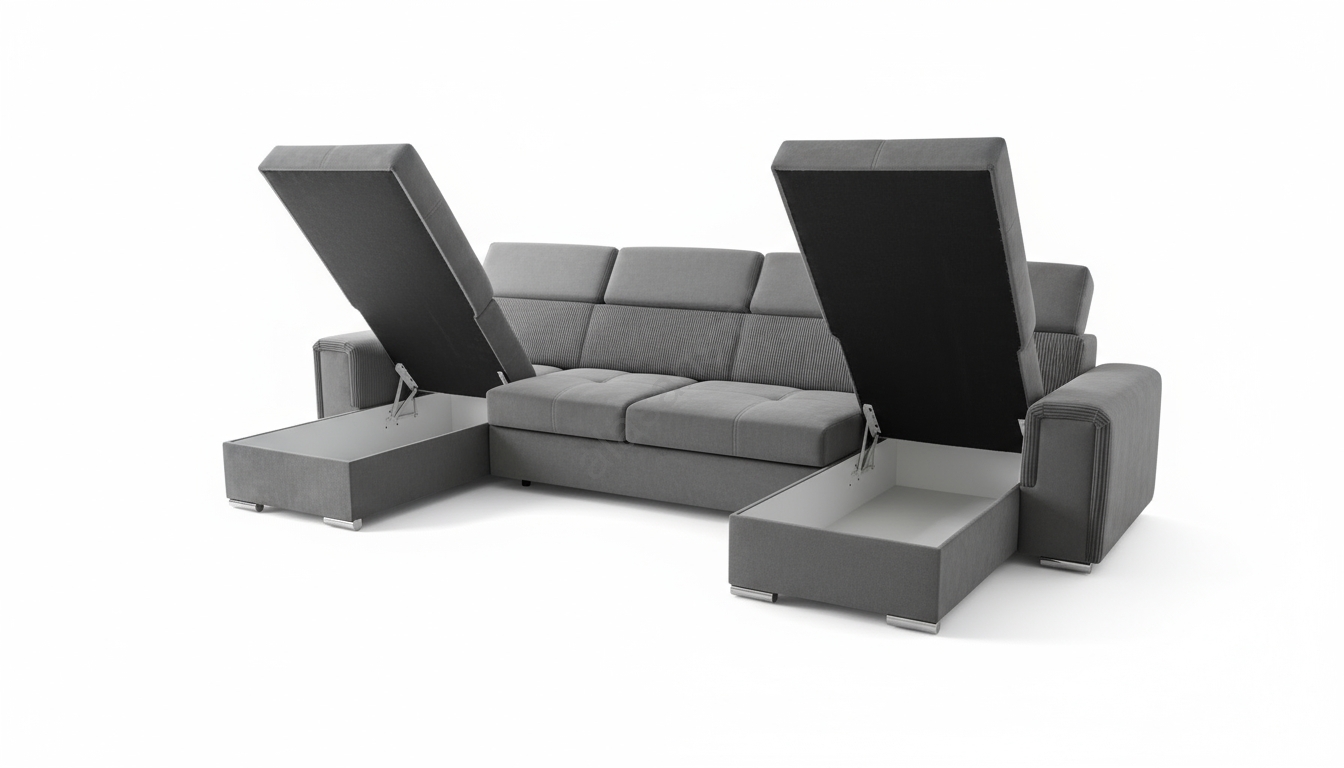 Sofá-cama em U com canto reversível e baú de arrumação SALVADA, cinza escuro